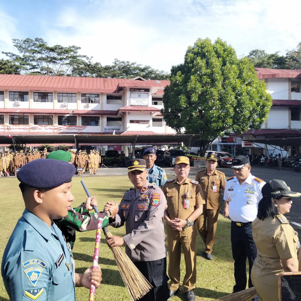 Apel dipimpin langsung oleh Sekretaris Daerah Minahasa Utara, Ir. Novly G. Wowiling, M.Si., yang mewakili Bupati Minahasa Utara. Sekitar 200 personel gabungan hadir dalam aksi ini, mulai dari prajurit Kodim 1310/Bitung, Polres Minut, Basarnas Sulut, Bakamla Minut, Lanudal Manado, hingga seluruh ASN Pemkab Minut dan petugas kebersihan.