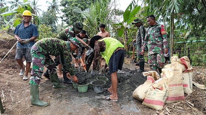 Lebih lanjut, Dandim menjelaskan bahwa keterlibatan aktif warga bukan sekadar membantu teknis pembangunan, tetapi juga menjadi bukti nyata kemanunggalan TNI dengan rakyat. Sinergi ini diharapkan dapat mempercepat target penyelesaian infrastruktur di wilayah tersebut.